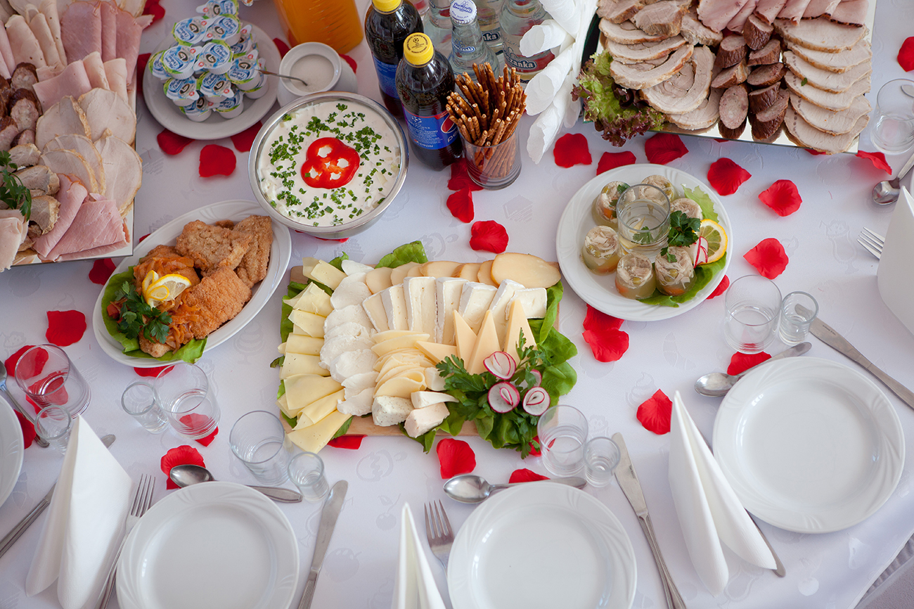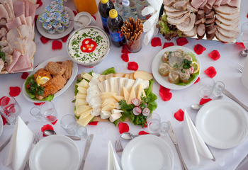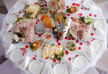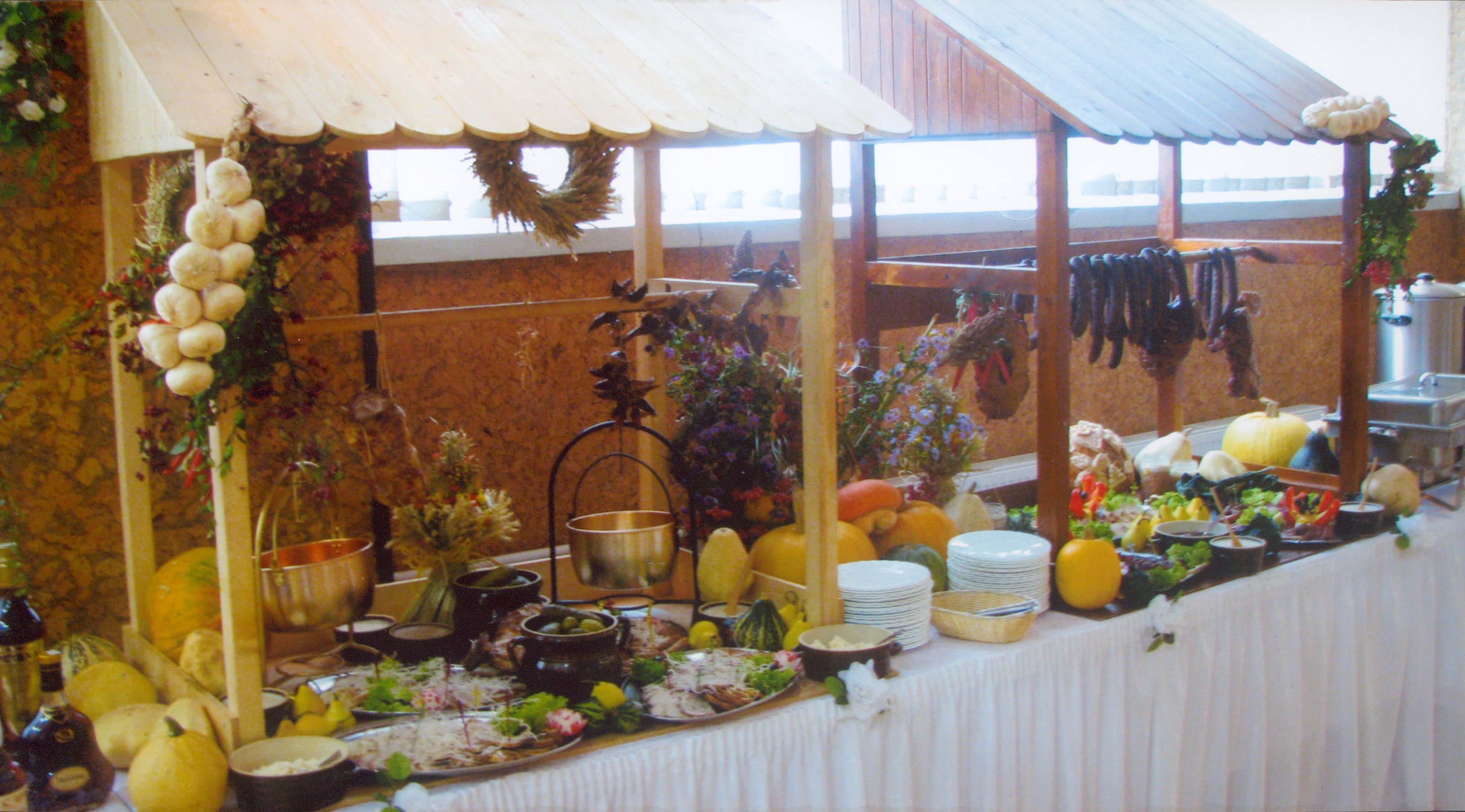 Stół wiejski - swojska kiełbasa, schab pieczony, kurczak z