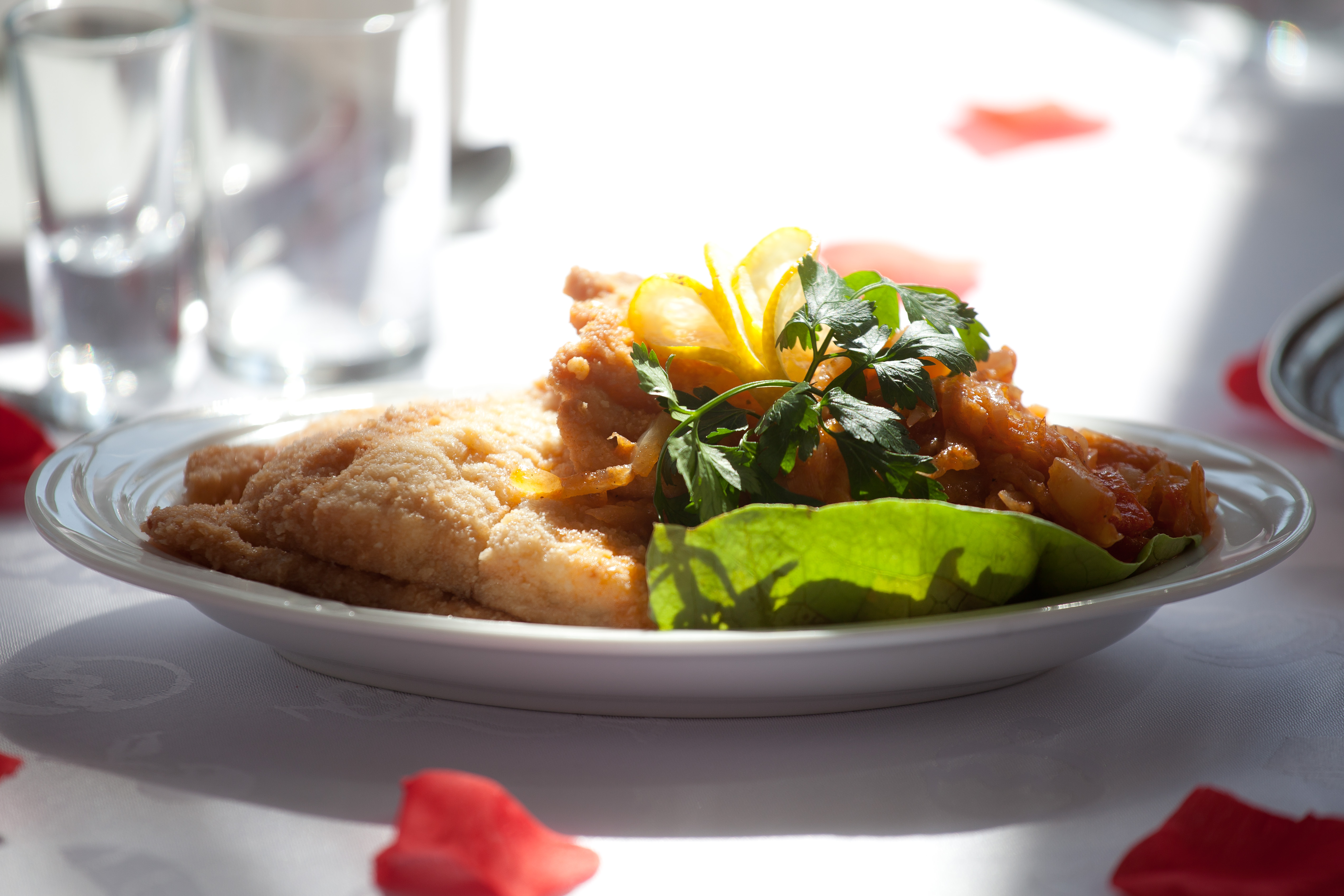 pietruszki, sok z cytryny, sos pieprzny